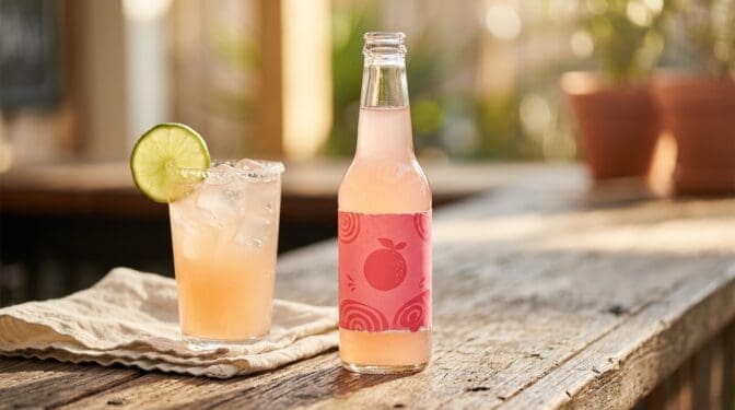 Jarritos Toronja is the pink grapefruit soda that makes a Paloma taste like a Paloma rather than a grapefruit juice-and-tequila situation. Cane sugar, natural flavours, a noticeable pinkness, and a not-too-aggressive fizz that holds up when poured over a salt-rimmed glass with ice. Each 370 ml bottle covers roughly two drinks. You can find it in Mexican grocers, most bigger independent bottle shops, and increasingly in Coles and Woolies. Capi Grapefruit is the Australian equivalent if you can’t track down Jarritos. Both work. The Jarritos wins on price and swagger.
