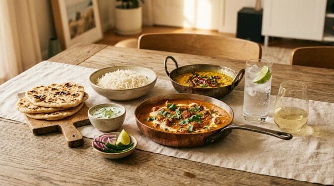 At home, the move is simple: G&T before, Riesling or Kingfisher with, and a cup of chai at the end. You don’t need a wine matching app. You need gin, lime, and good tonic. And the butter chicken on the stove.
